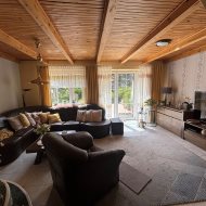 Powierzchnia użytkowa to ok. 270 m², z czego część mieszkalna obejmuje ok. 210 m², a garaż i piwnica ok. 60 m².